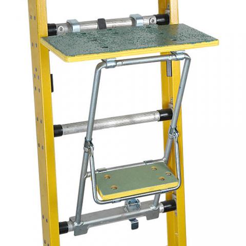 Provides a sturdy work platform while performing work from a ladder.